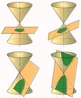 DEFINICION: Se denomina seccion conica (o simplemente cónica) a todas las curvas resultantes de las diferentes intersecciones entre un cono y un plano; si dicho plano no pasa por el vértice, se obtienen las cónicas propiamente dichas. Se clasifican en cuatro tipos: ELIPSE, PARABOLA, HIPERBOLA, Y CIRCUNFERENCIA.